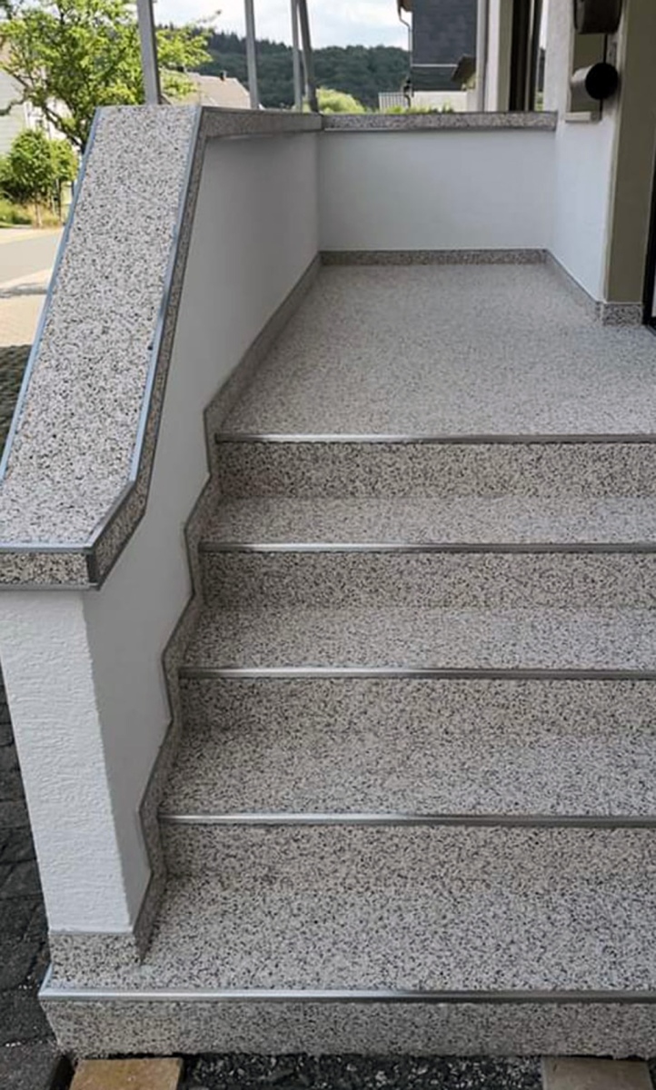 Με την χαλαζιακή επένδυση μπορείτε να διακοσμήσετε υπέροχα σε ανοιχτά ή σκούρα χρώματα σκάλες (εσωτερικές ή εξωτερικές).